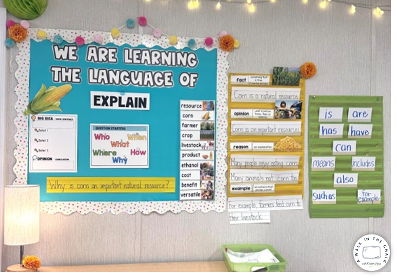 Displayed on your classroom wall, the board becomes a living reference tool that helps students access and use academic language throughout instruction of a language function unit.