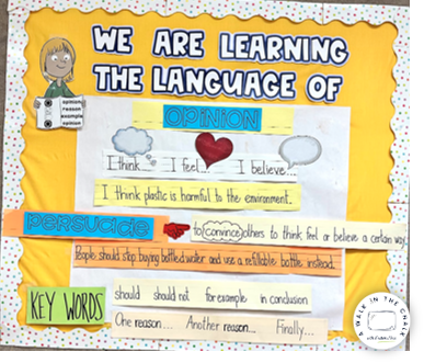 My first language function board was small and included 1- an introduction to the function, 2- key words or signal words and 3- sentence frames. It has evolved to include more visuals and content vocabulary.