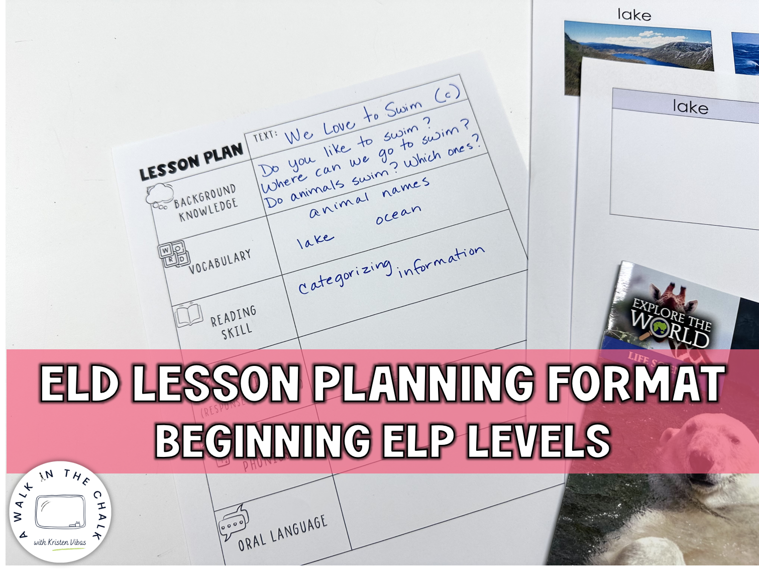 A 4-step ELD lesson planning guide, scaffolding chart by proficiency level, and sample walk-through lesson.